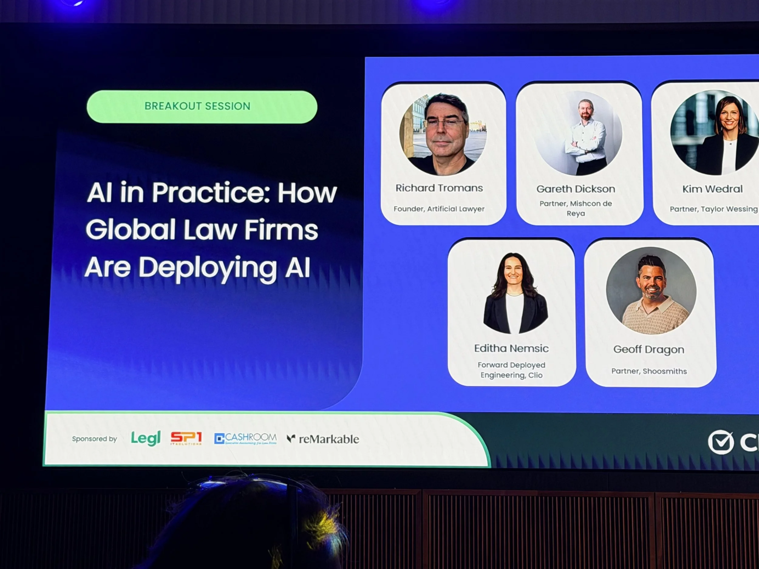 The panel on AI deployment in UK law firms was where theory met practice. Chaired by Richard Troman of Artificial Lawyer, it featured partners from Taylor Wessing, Shoosmith, and Mischon de Reya and Clio.